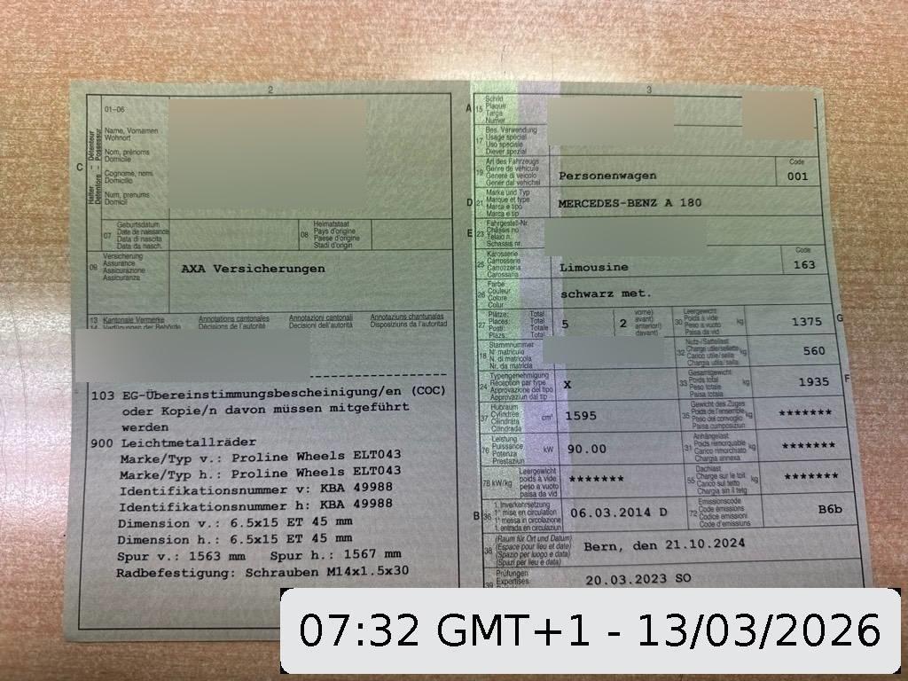 | Fahrzeugausweis | Vorhanden |