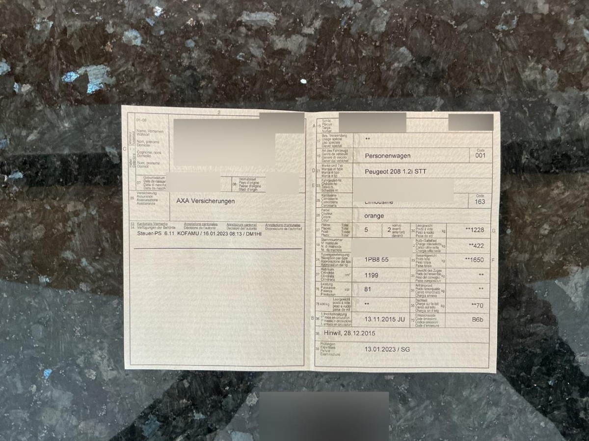 | Fahrzeugausweis | Fehlt |
