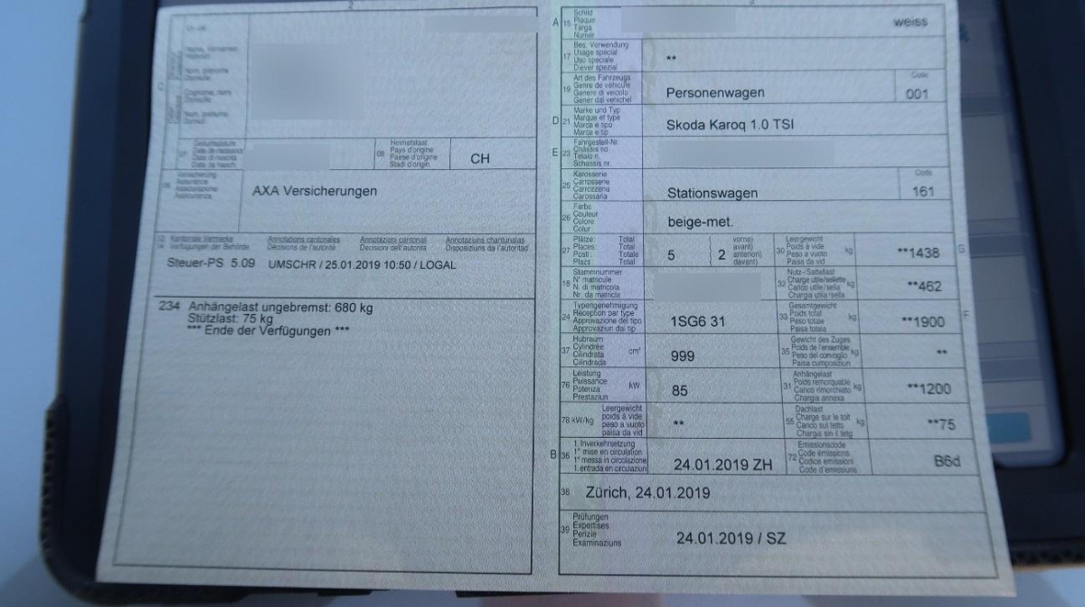 | Fahrzeugausweis | Vorhanden |