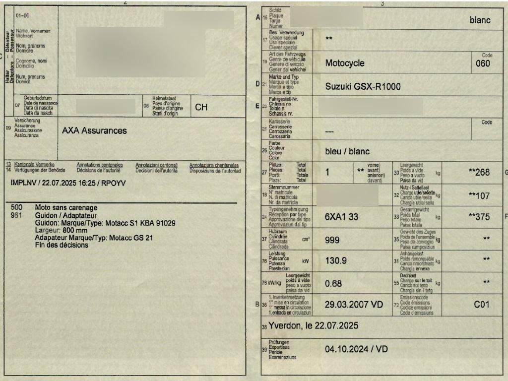 | Fahrzeugausweis | Vorhanden |