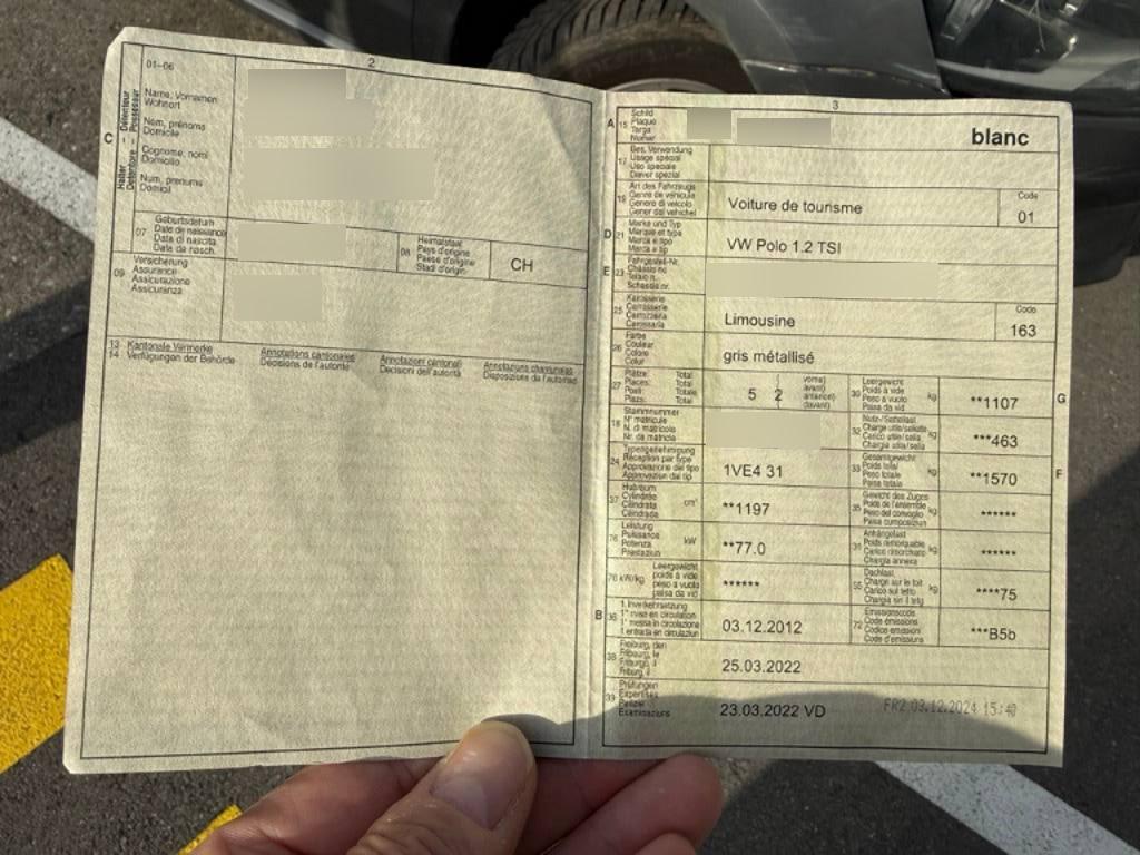 | Fahrzeugausweis | Vorhanden |