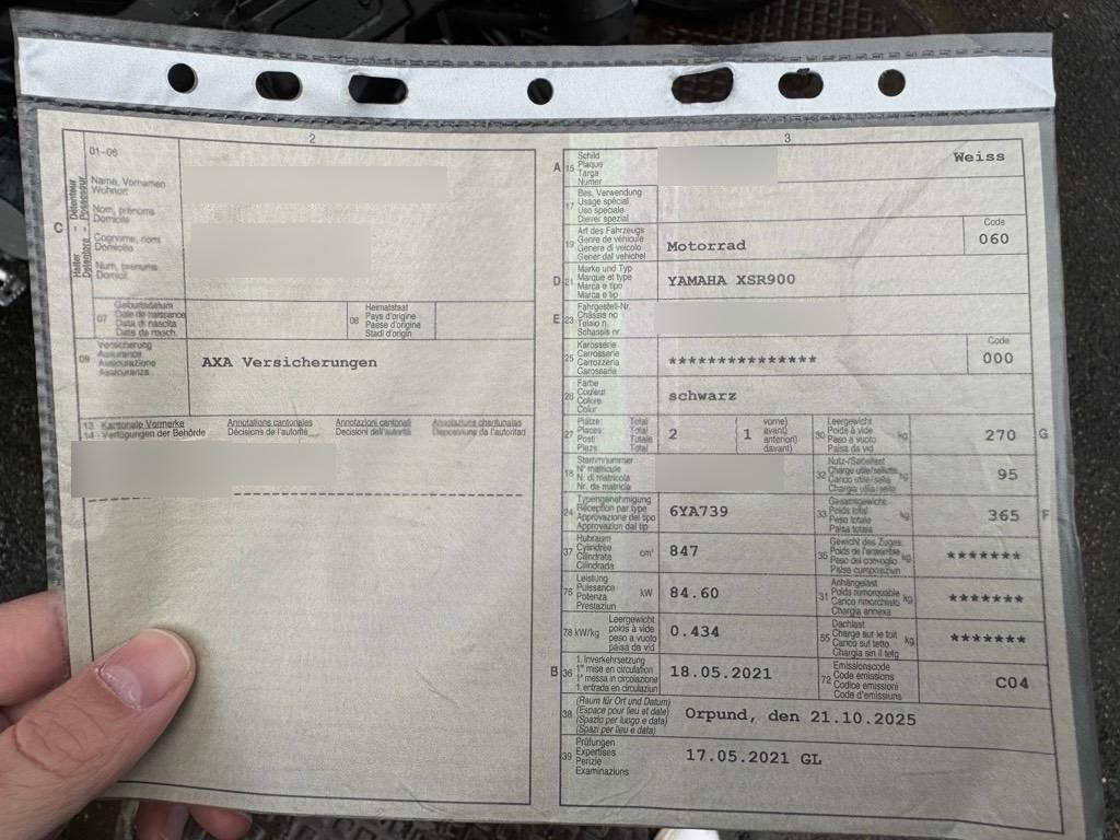 | Fahrzeugausweis | Vorhanden |
