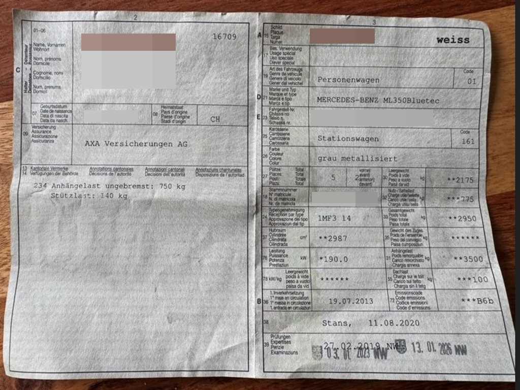 | Fahrzeugausweis | Vorhanden |