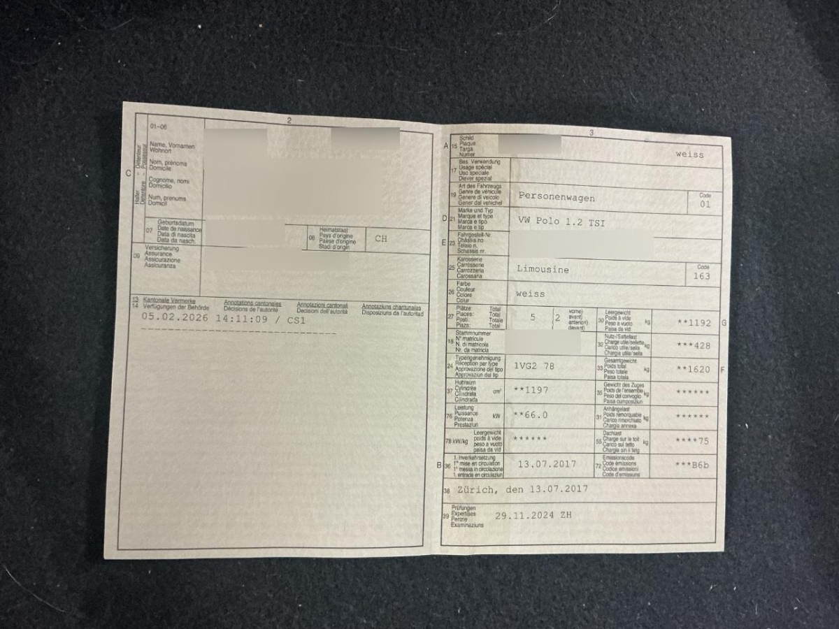 | Fahrzeugausweis | Vorhanden |