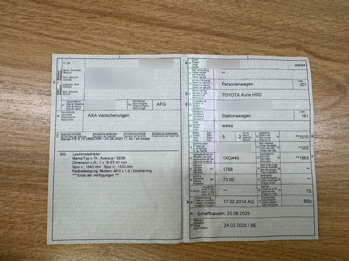 | Fahrzeugausweis | Vorhanden |