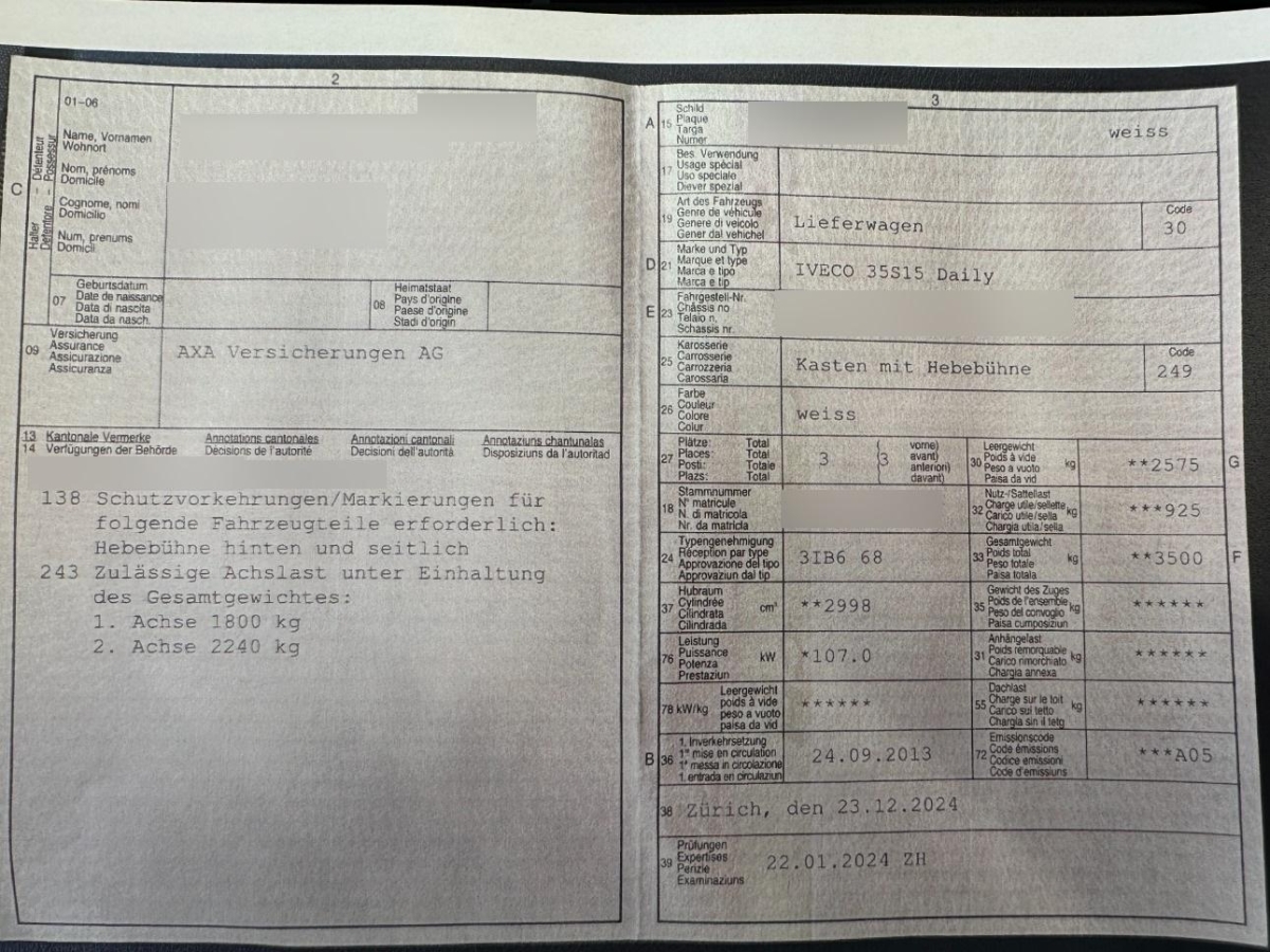 | Fahrzeugausweis | Vorhanden |