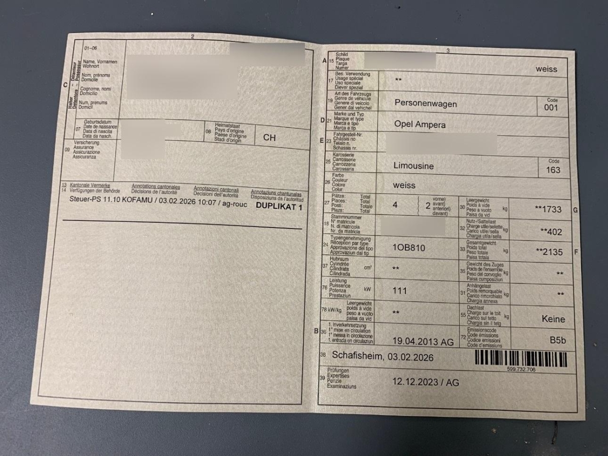 | Fahrzeugausweis | Vorhanden |
