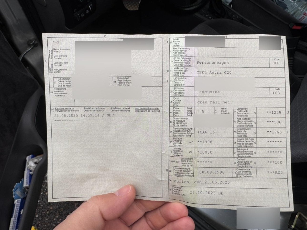 | Fahrzeugausweis | Vorhanden |