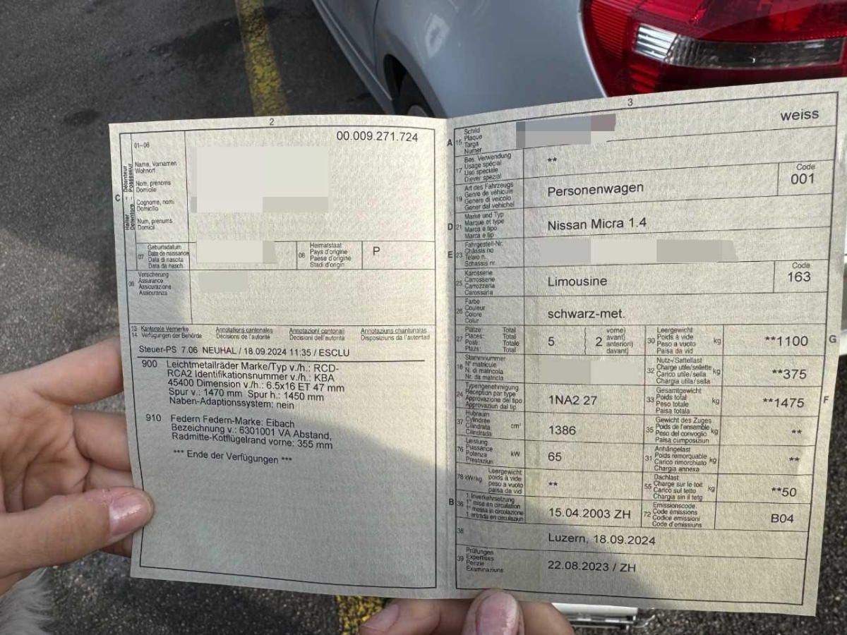 | Fahrzeugausweis | Vorhanden |