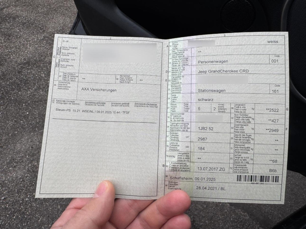 | Fahrzeugausweis | Vorhanden |