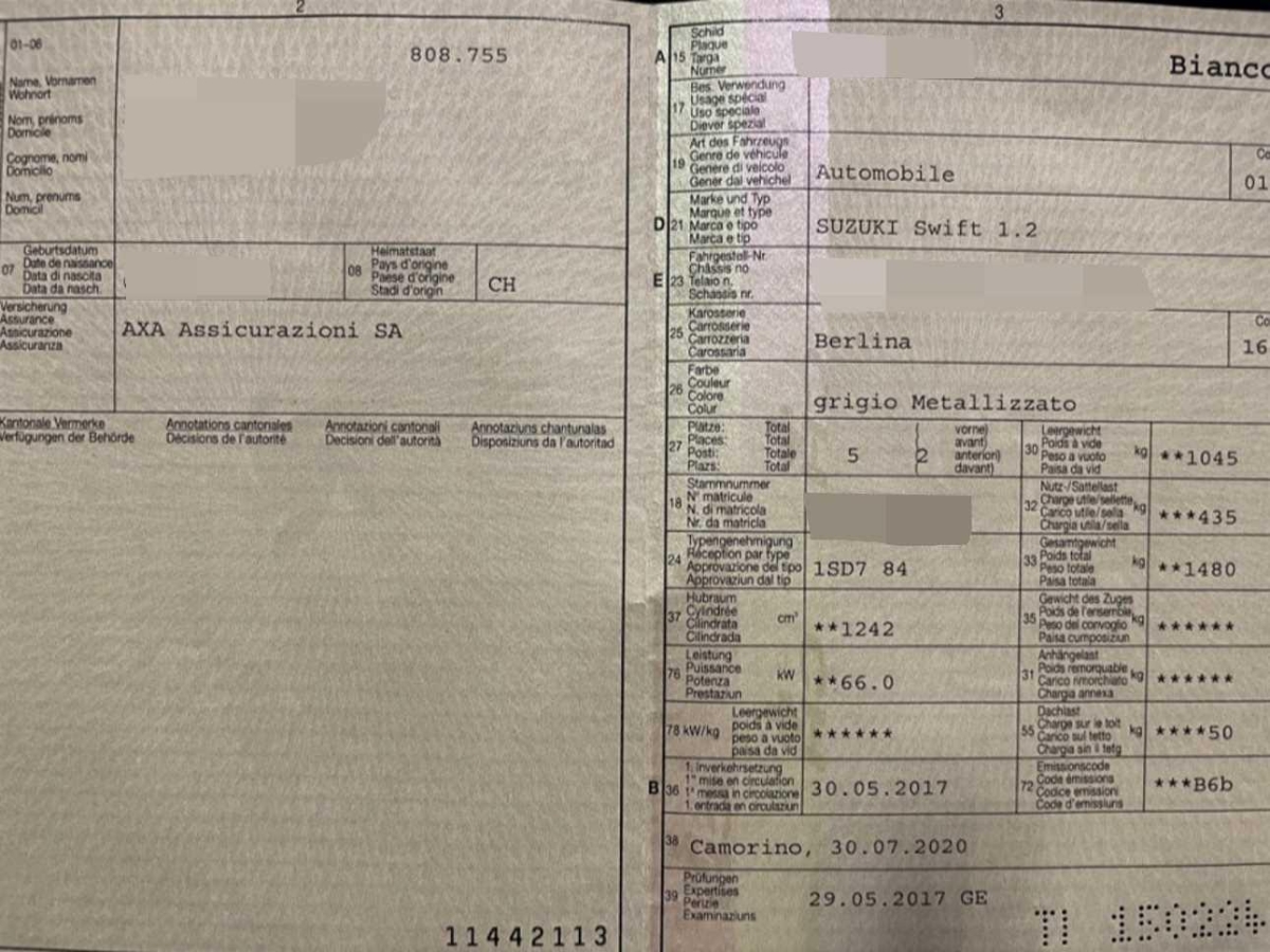 | Fahrzeugausweis | Vorhanden |