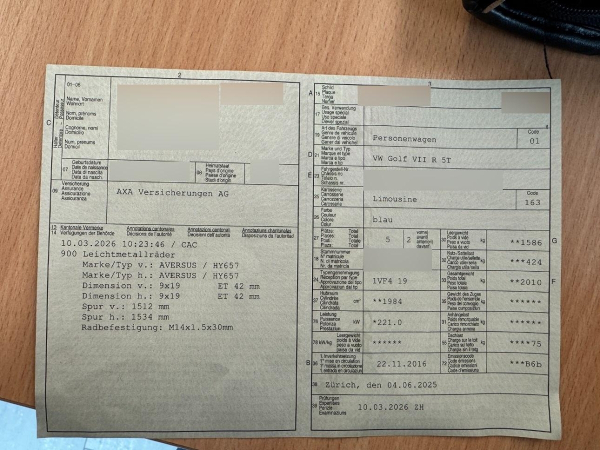 | Fahrzeugausweis | Vorhanden |