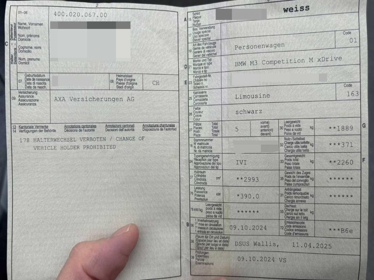 M Dachhimmel Anthrazit, Steckdose 12V, Media: Widescreen Display - Anzeigeverbund bestehend aus einem volldigitalen Instrumentendisplay mit 12,3" und einem hochauflösendem Control Display mit 14,9", Ablagemöglichkeiten, Seitenaufprallschutz, Ambientes Licht - Mit Ambiente-Lichtdesigns - Umfasst 11 vordefinierte wählbare Lichtdesigns in 6 Farben (Orange, Grün, Blau, Flieder, Bronze und Weiss) - Ambiente Wasserfallbeleuchtung - Ambiente Fussraumbeleuchtung - Ambiente Kartentaschenbeleuchtung - Ambiente Ablagefachbeleuchtung der Mittelkonsole - Konturbeleuchtung in Instrumententafel und Türverkleidung - Ambiente Türöffnerbeleuchtung, Sitze: Durchladesystem, Räder: 19"/20" M Schmiederäder Doppelspeiche 826 M Schwarz - mit Mischbereifung voren: 9,5J x 19, 275/35 R19 hinten: 10,5J x 20, 285/30 R20, Polster: Leder Merino mit erweiterten Umfängen Schwarz, Licht: Heckleuchten in LED-Technik - einteilige LED-Heckleuchten mit Rauchglas Komponenten - Heckleuchte mit Schlusslicht, Bremslicht, Fahrtrichtungsanzeiger (LED-Technologie), Scheibenwaschdüsen beheizt, Sitze: M Sportsitze vorne, Kennzeichenbeleuchtung in LED, Paket: Innen- und Aussenspiegelpaket, Fahrwerk: M Sportdifferential - Aktives M Differenzial - M spezifisch abgestimmtes, elektronisch geregeltes Hinterachs-Lamellensperrdifferential mit zusätzlichen Kühlrippen an Gehäuseunterseite - vollvariable Einstellung des Sperrgrads, je nach Fahrsituation und Fahrbahnbeschaffenheit zwischen 0 und 100%. Verbesserung von Traktion, Agilität, Stabilität sowie Fahrverhalten: - Traktion: Zuweisung von 'mehr Drehmoment' auf das Rad mit besserer Bodenhaftung - Agilität: gesteigertes Querbeschleunigungs- und Fahrdynamikpo, Sonnenschutzverglasung Reduziert bei Sonneneinstrahlung die Aufheizung des Fahrzeuginnenraums. Stärker eingefärbte Verglasung im hinteren Fahrzeugbereich bewirkt eine stärkere Absorption des Sonnenlichtes für diese Flächen., iDrive Controller, Innenspiegel, automatisch abblendend Abblendsteuerung mittels eingebauter Sensorik, die das von hinten einfallende Licht misst und bei berechneter Blendung den Innenspiegel entsprechend abblendet, Assist: Geschwindigkeitsregelung mit Bremsfunktion Geschwindigkeitsregelung ab ca. 30 km/h auch bei Bergabfahrten durch zusätzlichen Bremseingriff, Bedienung über Multifunktionslenkrad, Anzeige der Wunschgeschwindigkeit und des Betriebsmodus in der Instrumentenkombination, Fahrer kann Funktion jederzeit übersteuern., Sonnenblenden mit Make-Up-Spiegel beleuchtet, Paket: Ablagenpaket Innenraum: Klappfach Instrumententafel unten, Fahrerseite Gepäckraum: - Trennetz an Seitenverkleidung links/rechts - Taschenhaken beidseitig im Gepäckraum - zusätzliche 12V Steckdose, Media: ConnectedDrive Services, Dekor: Galvanikapplikation für Bedienelemente, Regensensor, Media: Ablage für Wireless Charging - drahtloses Laden eingelegter Geräte mit dem Ladestandard Qi - NFC-Schnittstelle zum Fahrzeug - aktive Gerätekühlung integriert, Servotronic, Antiblockiersystem (ABS), Räder: Radschraubensicherung, M Hochglanz Shadow Line Ausführung in Schwarz hochglänzend: - Blende Spiegeldreieck - Spiegelschwert - Spiegelfuß - Spiegelbrille - B-Säule und Fensterführungsstege - Fensterschachtabdeckung - Fensterumrandung, Warndreieck - inklusive Erste-Hilfe-Set, BMW Mobile Care - BMW Mobile Care: Pannen- und Unfallhilfe - Die BMW Pannen- und Unfallhilfe ist an 365 Tagen im Jahr rund um die Uhr im In- und Ausland für Sie da und das bis zu fünf Jahre nach der Erstzulassung Ihres Fahrzeugs., Lenkrad: Multifunktionslenkrad, Check-Control-System, Parkbremse, elektromechanisch, Räder: Reifenreparatur-Set (Tire Fit), Katalysator geregelt, BMW Garantie: Repair Inclusive - 3 Jahre/100.000 km Gültigkeit: 3 Jahre oder 100.000 Kilometer - es gilt das zuerst Erreichte, Condition Based Service, M Sicherheitsgurte - Sicherheitsgurte in schwarz mit M spezifischen Streifen, Sitze: Lordosenstütze für Fahrer und Beifahrer - Verstellung von Höhe und Tiefe in der Rückenlehne, Auto Start Stop Funktion, Getriebe: 8-Stufen-Sportautomat Steptronic, Räder: Reifen Pannen Anzeige, Räder: Reifendruck-Kontrolle, Lackierung: Uni-Lackierung, Assist: Crash-Sensor, Airbag: Airbag Beifahrer deaktivierbar, Sitze: Kopfstützen hinten abklappbar, Armauflage vorn und hinten, in Türverkleidung integriert, Sitze: Kindersitzbefestigung ISOFIX, äussere Fondsitze, Lenkrad: Lenkrad längs- und höhenverstellbar, Start-/Stop-Knopf, Media: DAB+ Tuner, Licht: Nebelschlussleuchte, Sitze: Sitzheizung für Fahrer und Beifahrer, 3-Punkt-Sicherheitsgurte auf allen Plätzen, Airbag: Airbag Fahrer und Beifahrer, Assist: Active Guard, Alarmanlage - zur Überwachung der Türen, Front- und Heckklappe, inklusive Innenraumschutz, Neigungsalarmgeber und Notstromsirene, Licht: Begrüssungslicht, Teleservices, Schaltpunktanzeige, M Hochglanz Shadow Line mit erweiterten Umfängen - Außenspiegelkappen und Heckspoiler in Schwarz Hochglanz - Endrohrblenden in Schwarzchrom, Getränkehalter, Licht: LED-Scheinwerfer - Abblendlicht (Bi-LED-Technologie) - Fernlicht (Bi-LED-Technologie) - Tagfahrlicht LED-Technologie) - Fahrtrichtungsanzeiger Augenbraue (LED-Technologie), Media: BMW Live Cockpit Professional - Anzeigeverbund bestehend aus einem volldigitalen Instrumentendisplay mit 12,3" und einem hochauflösendem Control Display mit 14,9" - BMW Operating System 8.5 - Full-Color Head-Up Display mit konfigurierbaren HUD-Inhalte - Navigationsfunktion - Intuitive Bedienmöglichkeiten - Fahrerprofil - Tuner mit Diversity-Empfang und RDS - USB-Anschlüsse - Bluetooth / WiFi Schnittstelle - Remote Software Upgrade, Gesetzlicher Notruf, Einstiegsschienen mit Logo, Media: harman/kardon Surround Sound-System - Digitaler Verstärker mit individuell einstellbarem Equalizing, 464 W Verstärkerleistung, 9 Kanäle. Lautsprecherblenden mit harman/kardon-Schriftzug, 16 Lautsprecher., Media: Freisprecheinrichtung mit USB-Schnittstelle, Elektronische Wegfahrsperre, Innenbele