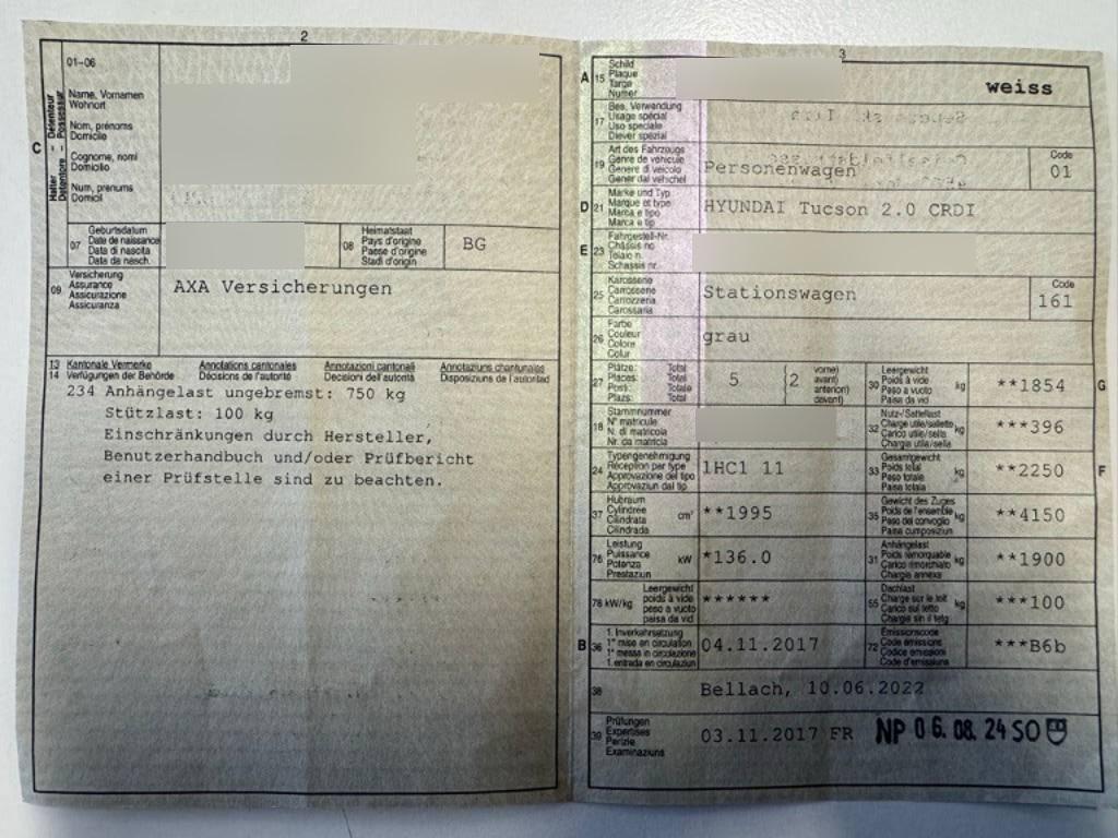 | Fahrzeugausweis | Vorhanden |