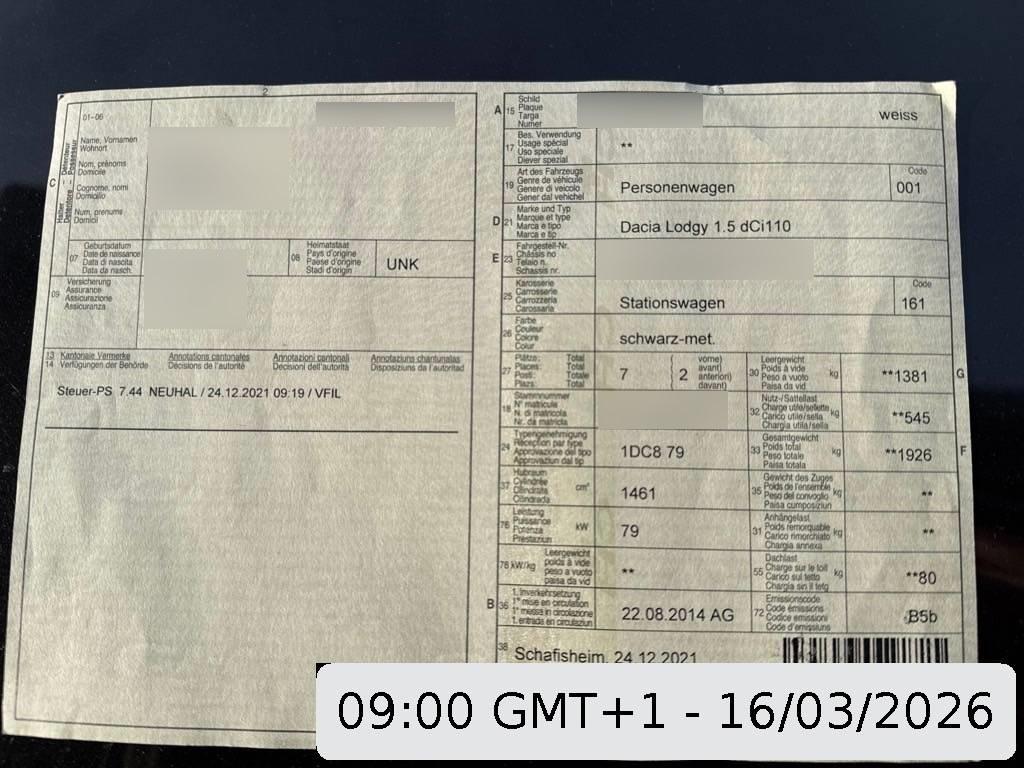 | Fahrzeugausweis | Vorhanden |