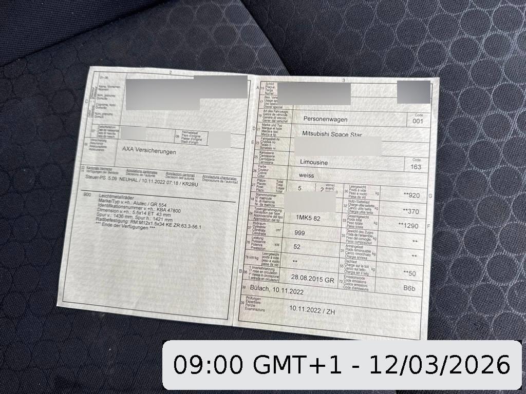 | Fahrzeugausweis | Vorhanden |