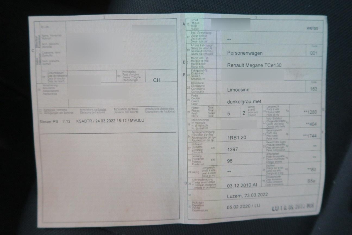 | Fahrzeugausweis | Vorhanden |