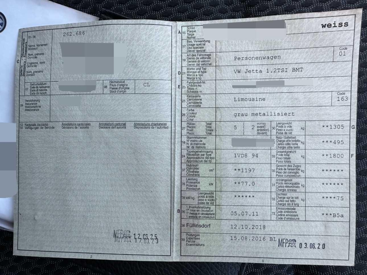 | Fahrzeugausweis | Vorhanden |