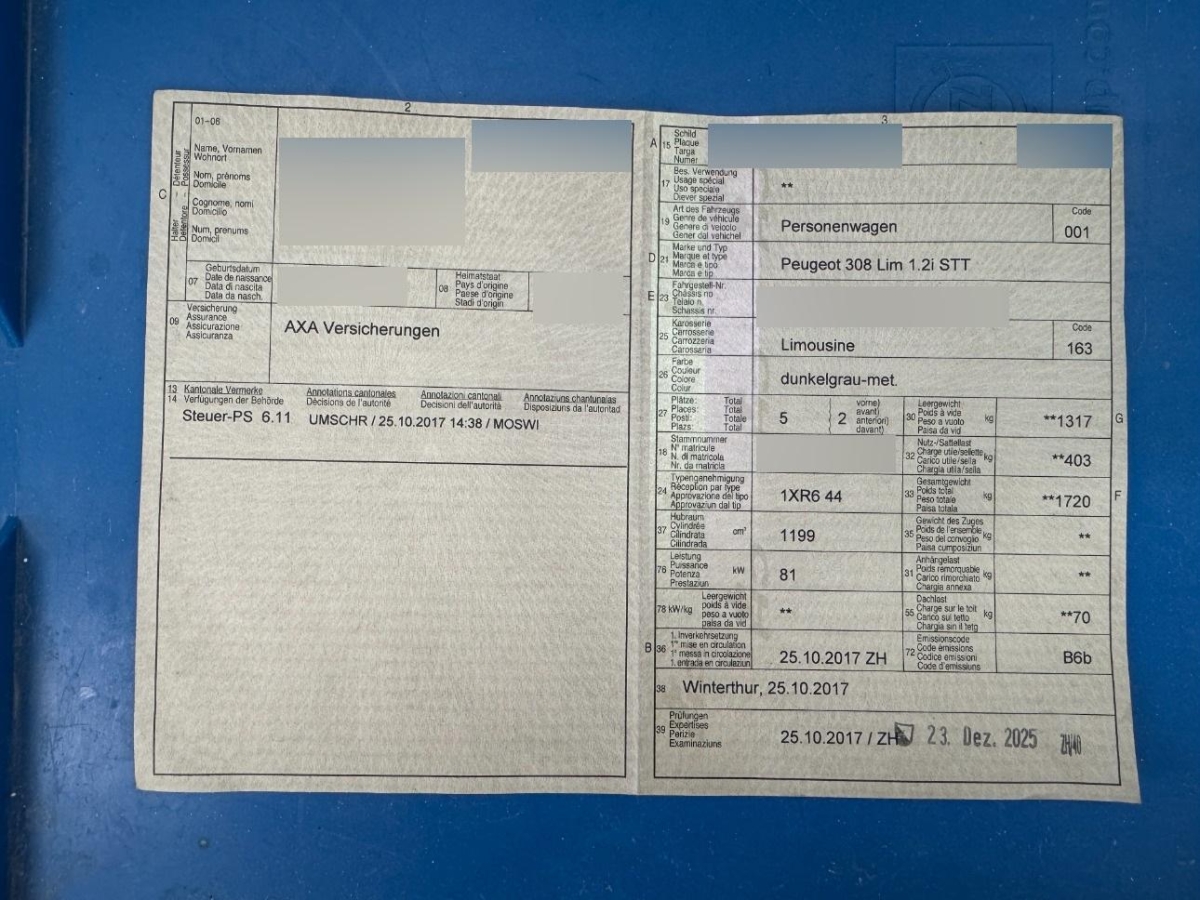 | Fahrzeugausweis | Vorhanden |