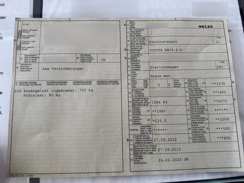 | Fahrzeugausweis | Vorhanden |