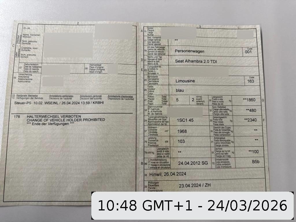 | Fahrzeugausweis | Vorhanden |