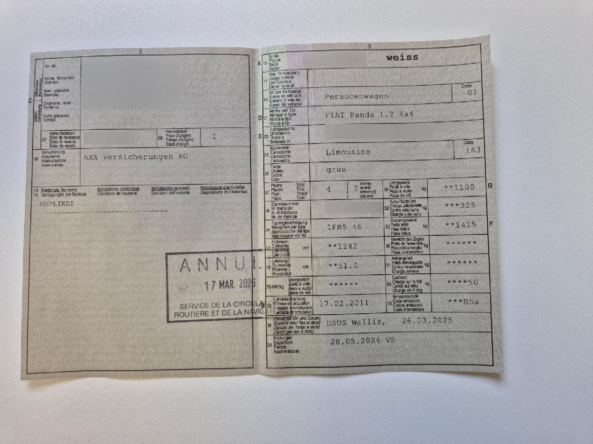 | Fahrzeugausweis | Vorhanden |