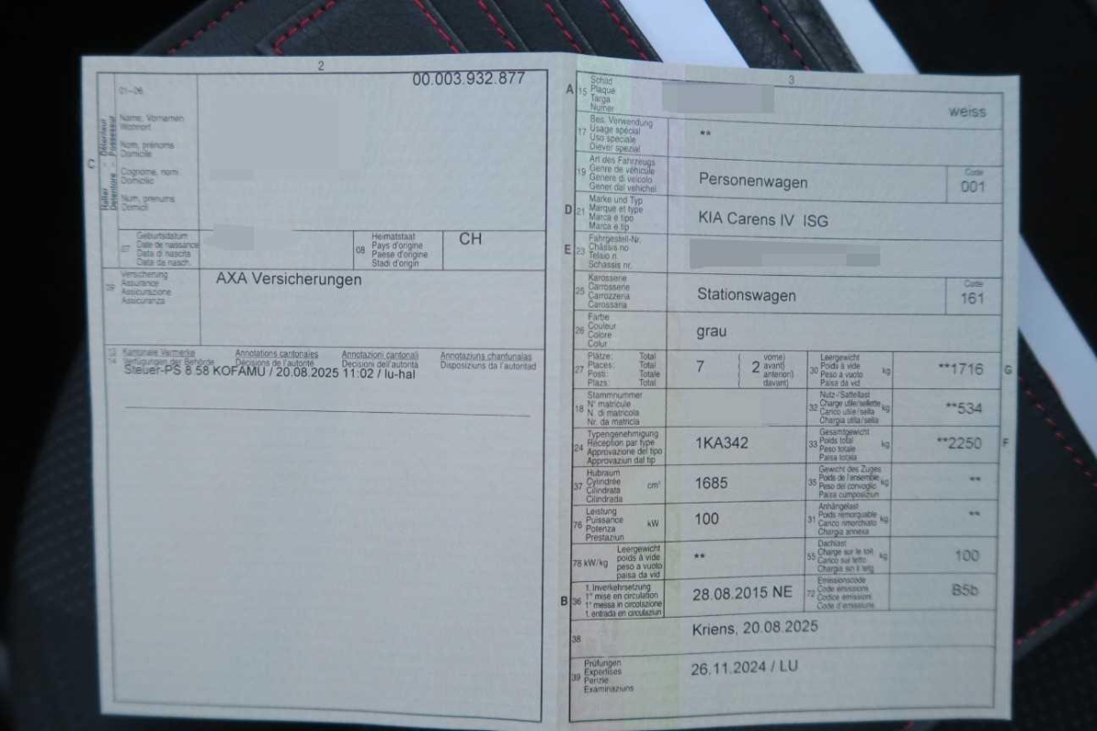 | Fahrzeugausweis | Vorhanden |