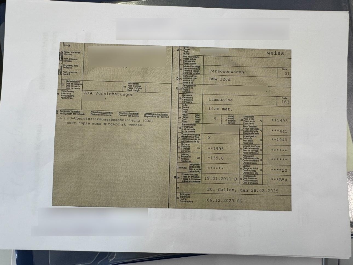 | Fahrzeugausweis | Vorhanden |