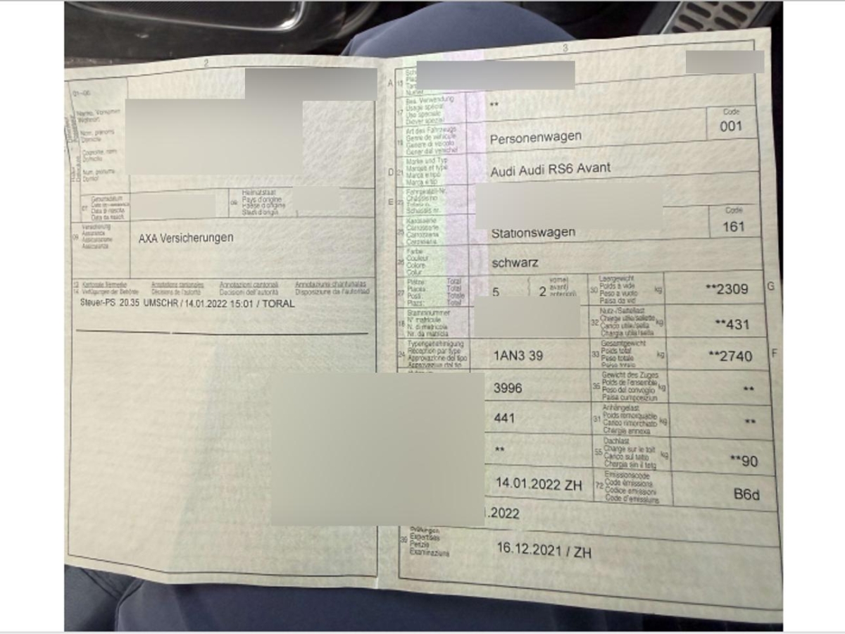 | Fahrzeugausweis | Vorhanden |
