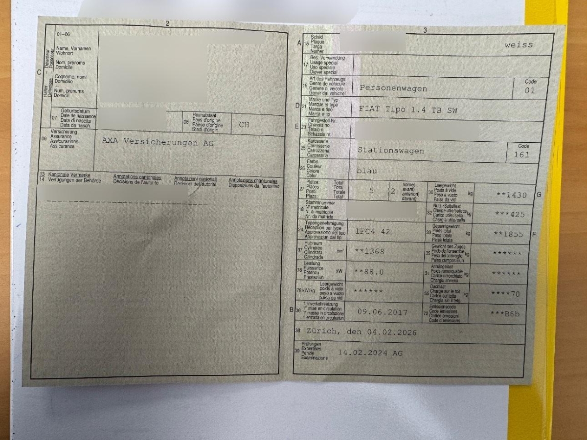 | Fahrzeugausweis | Vorhanden |