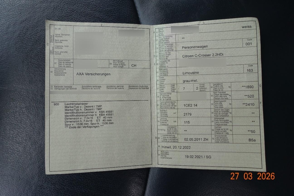 | Fahrzeugausweis | Vorhanden |