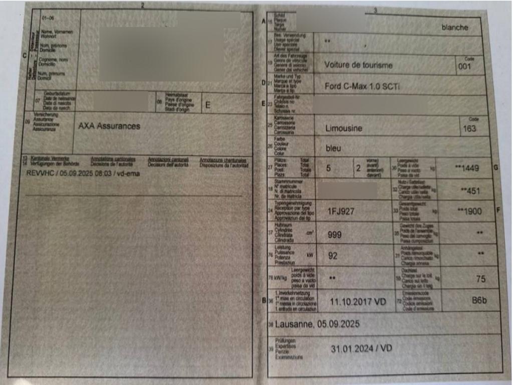 | Fahrzeugausweis | Vorhanden |