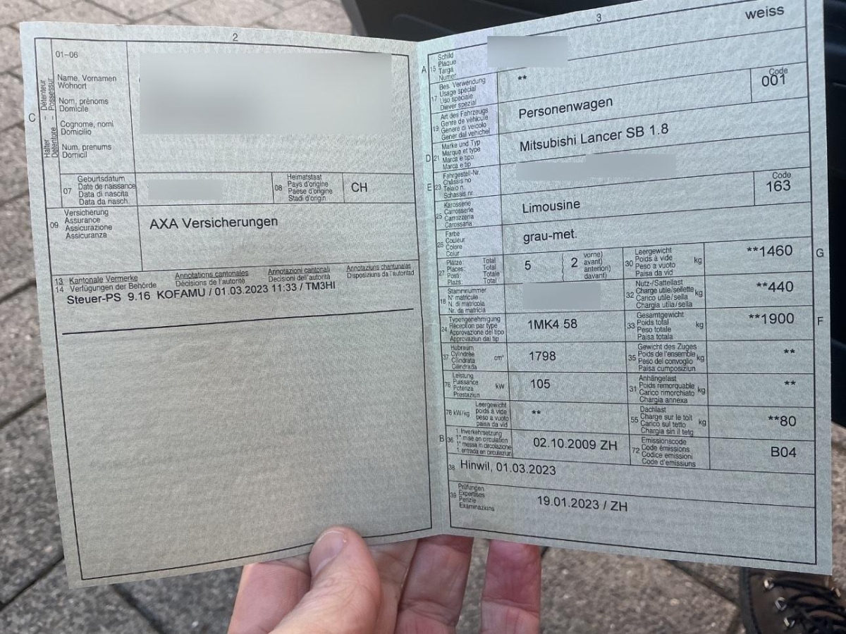 | Fahrzeugausweis | Vorhanden |