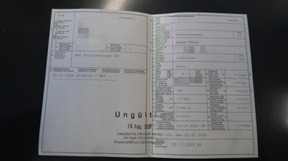 | Fahrzeugausweis | Vorhanden |