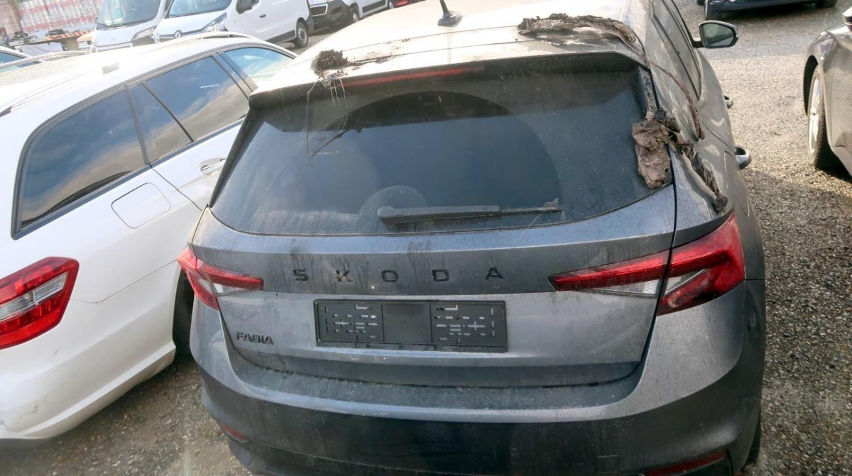 Das Fahrzeug stand nahe einem brennenden Fahrzeug in der Einstellhalle und hat diverse Hitzeschäden rundum.