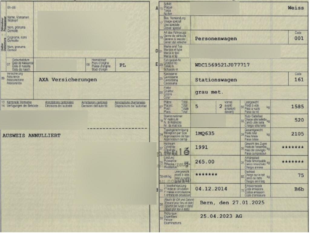 | Fahrzeugausweis | Vorhanden |