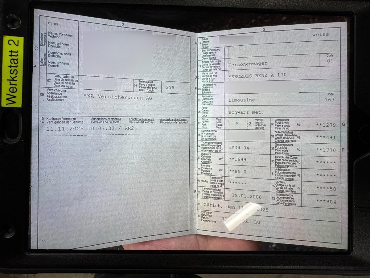 | Fahrzeugausweis | Vorhanden |