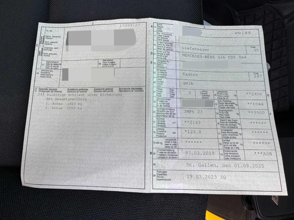 | Fahrzeugausweis | Vorhanden |
