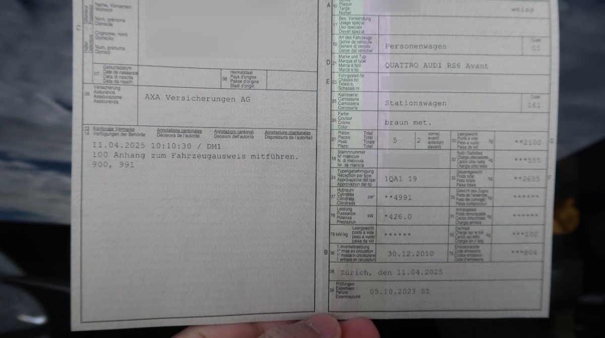 | Fahrzeugausweis | Vorhanden |