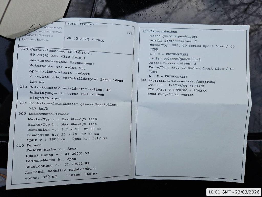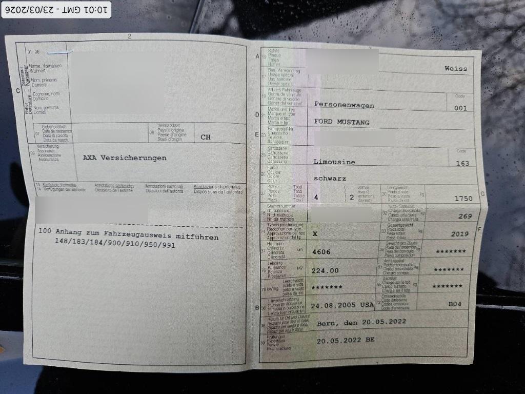 | Fahrzeugausweis | Vorhanden |