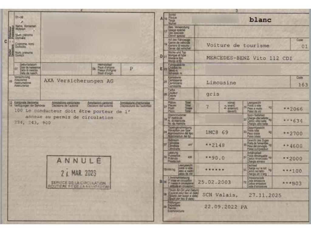 | Fahrzeugausweis | Vorhanden |