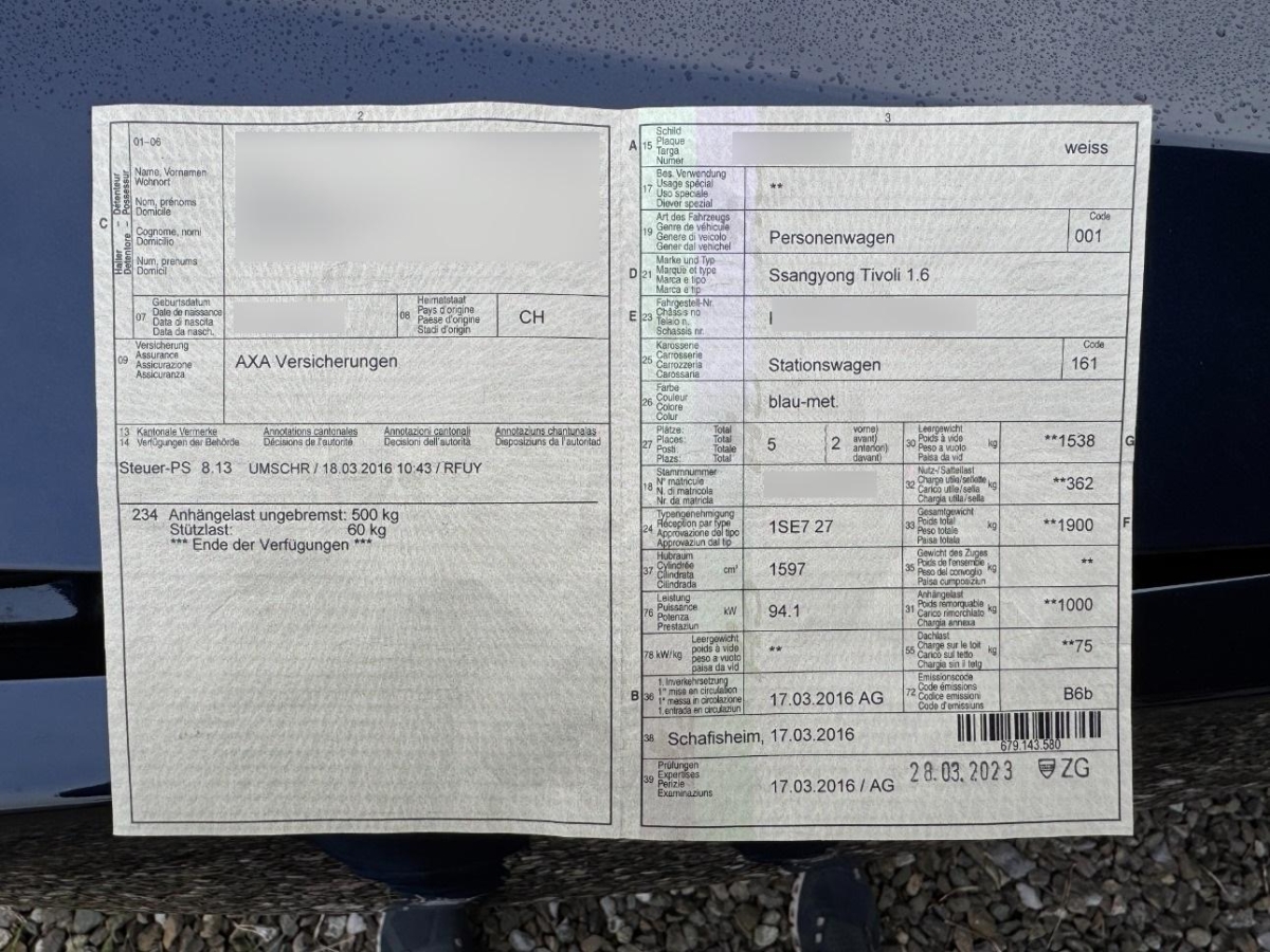 | Fahrzeugausweis | Vorhanden |