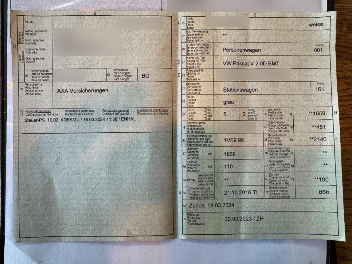 | Fahrzeugausweis | Vorhanden |