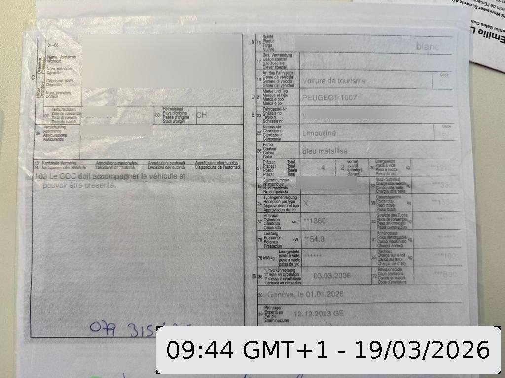 | Fahrzeugausweis | Vorhanden |