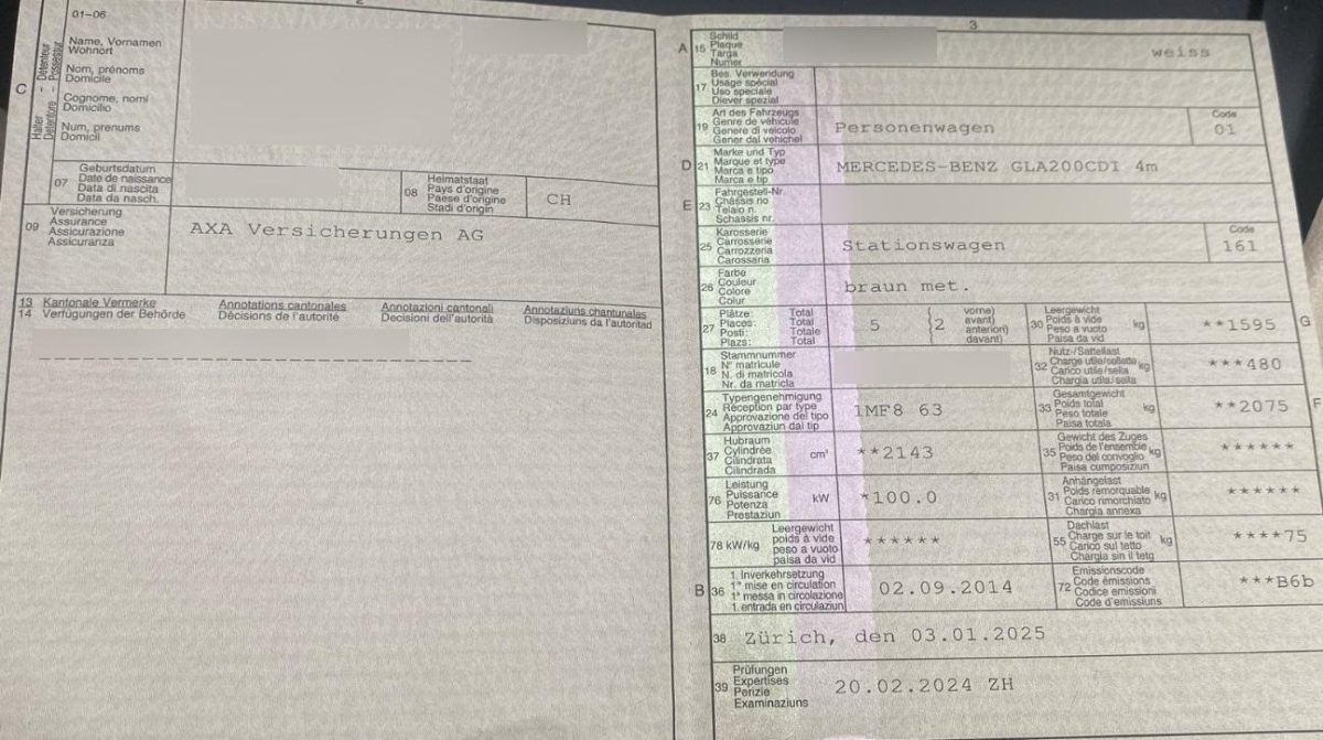 | Fahrzeugausweis | Vorhanden |
