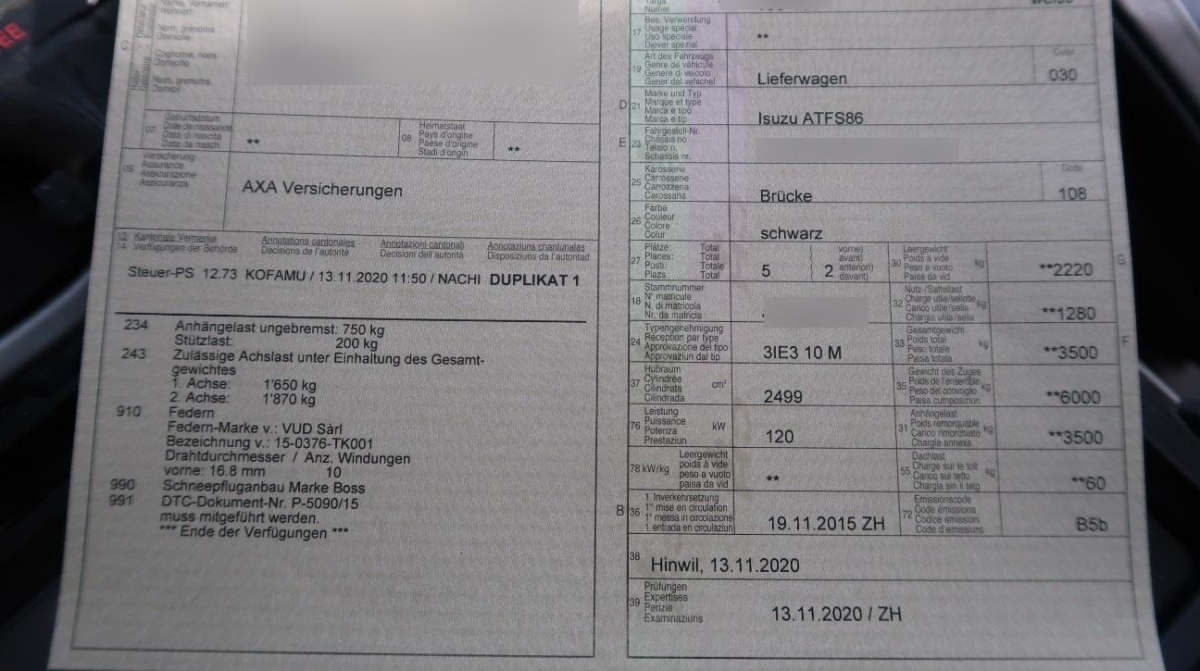 | Fahrzeugausweis | Vorhanden |