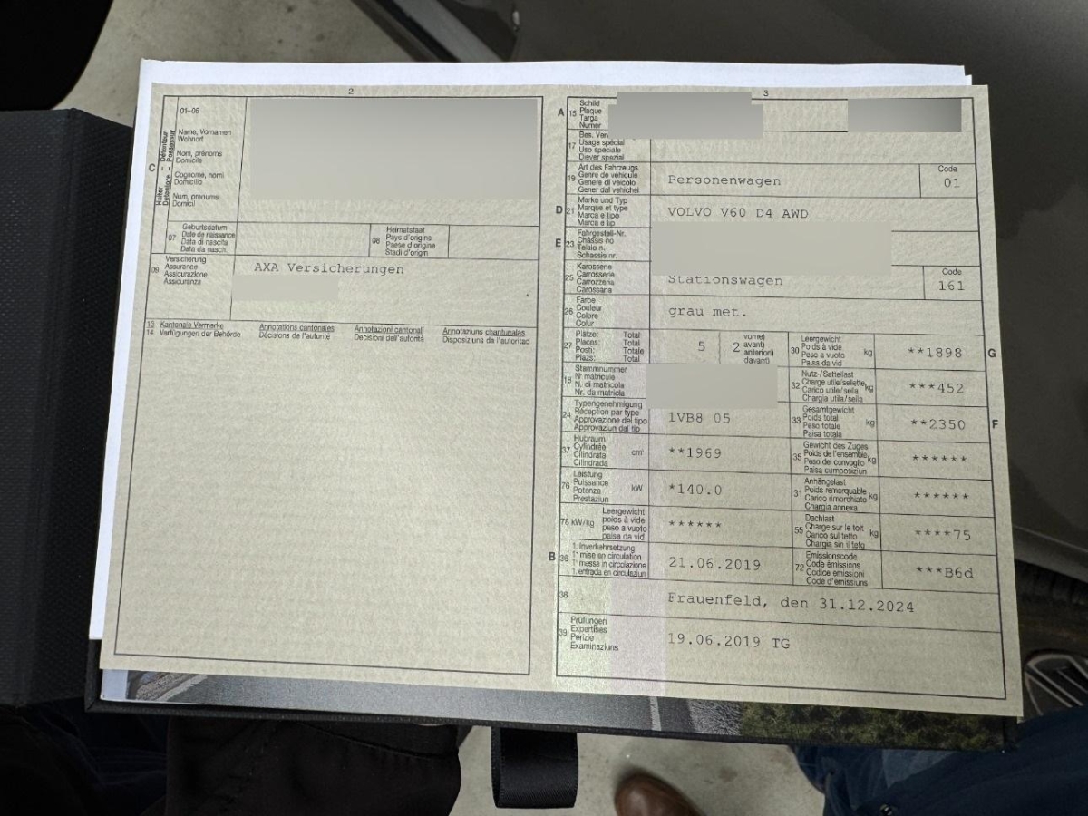 | Fahrzeugausweis | Vorhanden |