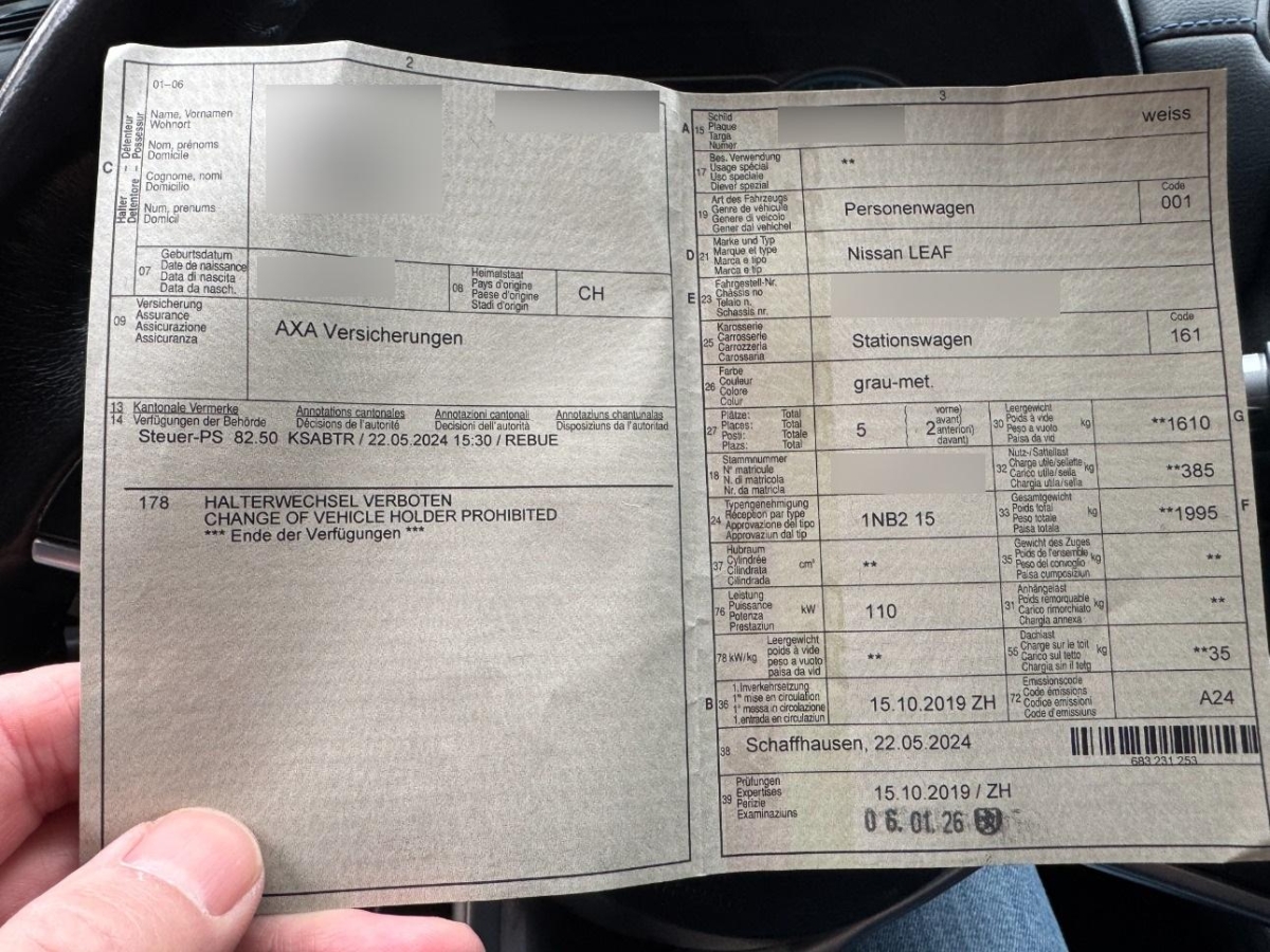 | Fahrzeugausweis | Vorhanden |