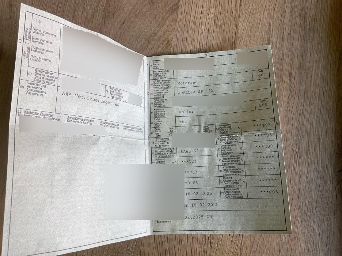 | Fahrzeugausweis | Vorhanden |
