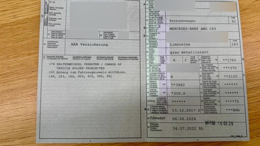 | Fahrzeugausweis | Vorhanden |